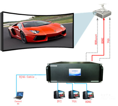 標(biāo)清融合處理器HX-CC210D輸出支持高達(dá)1440×900高清輸出,支持適合4:3、16:9長(zhǎng)寬比投影機(jī)的畫面輸出。
